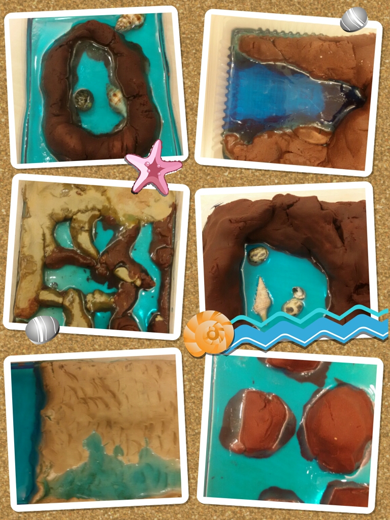 在捏地形的黏土時, 我們就用地形卡來教他們每個地形不同的地方, 這個地形卡很簡單易看易懂也容易照著做, 待環氧樹脂倒入都乾了以後, 我們再用地形定義卡來複習前一天做過的地形, 讓孩子知道每個地形的結構跟出現的位置, 解釋完了之後就讓他們自己把地形卡跟定義卡按照模型來配對排好……如上圖.