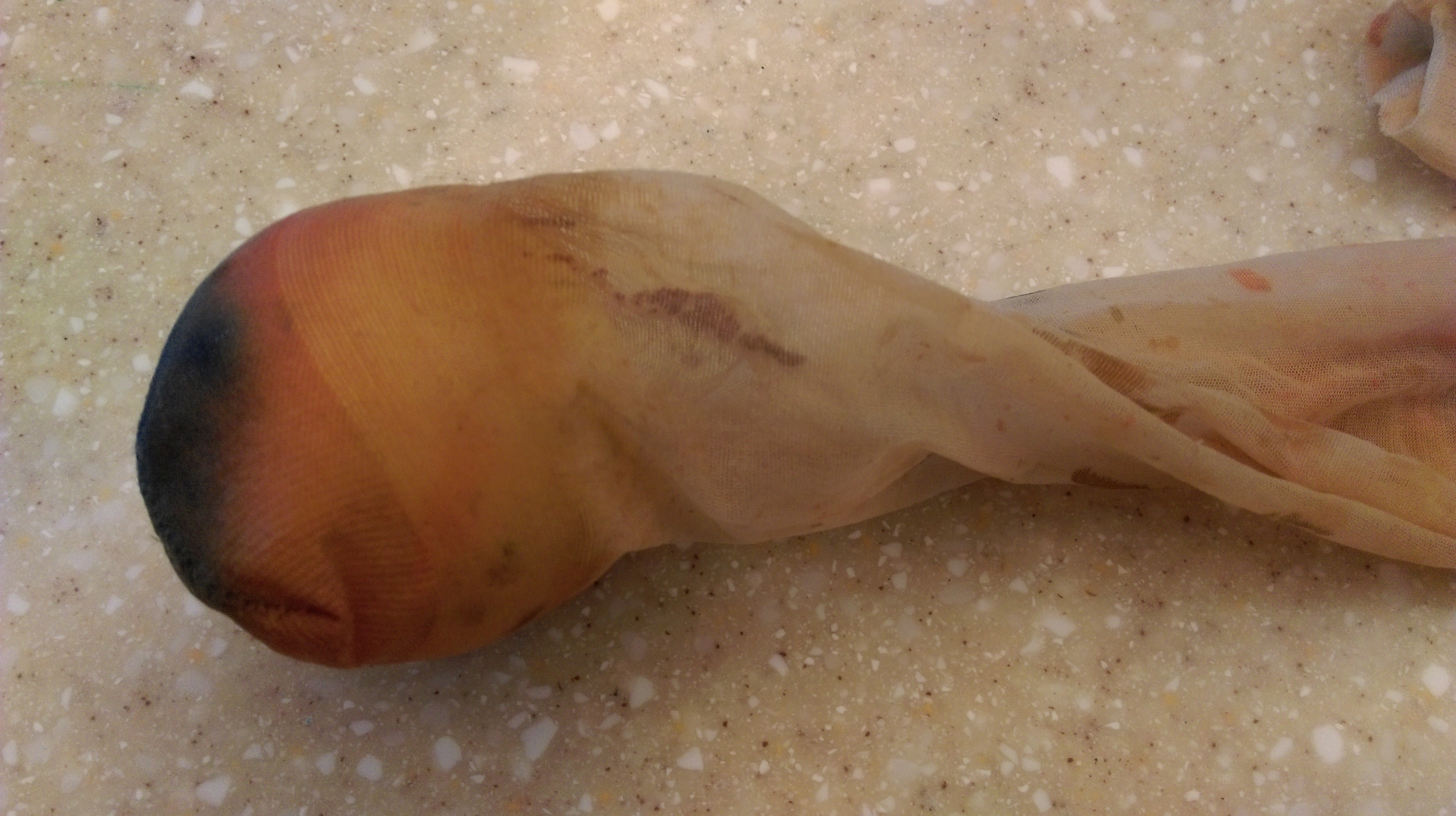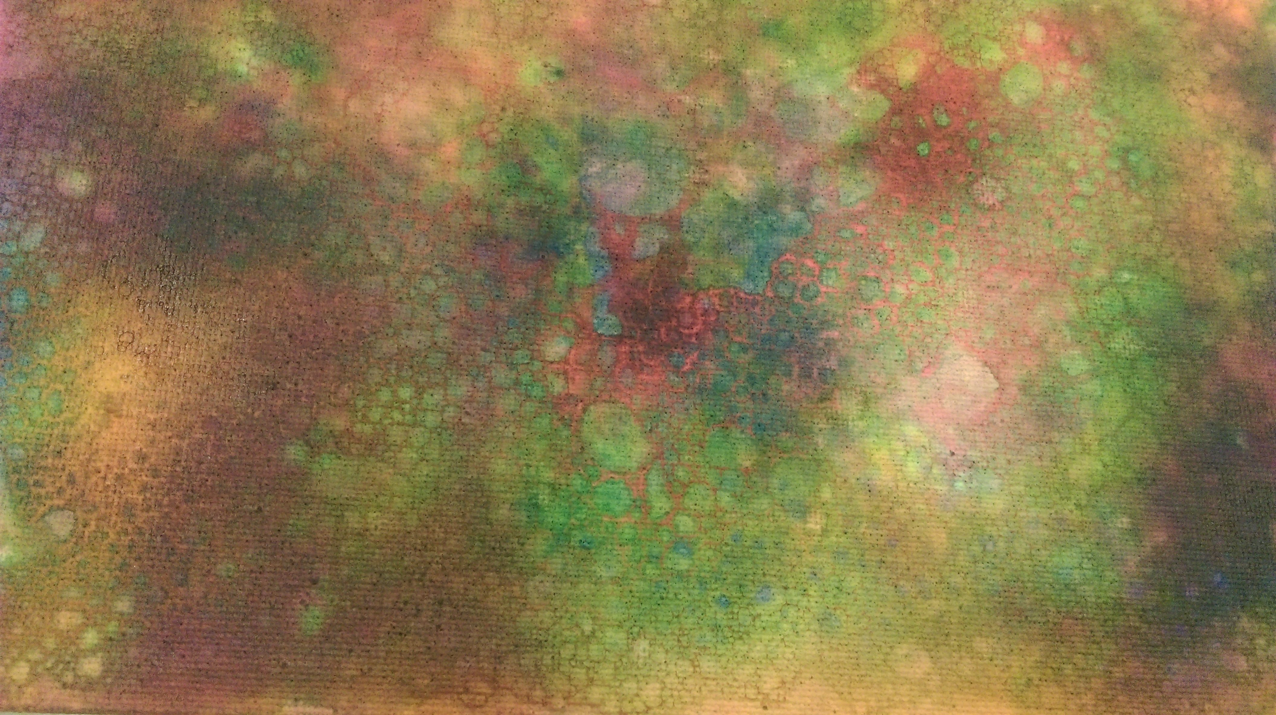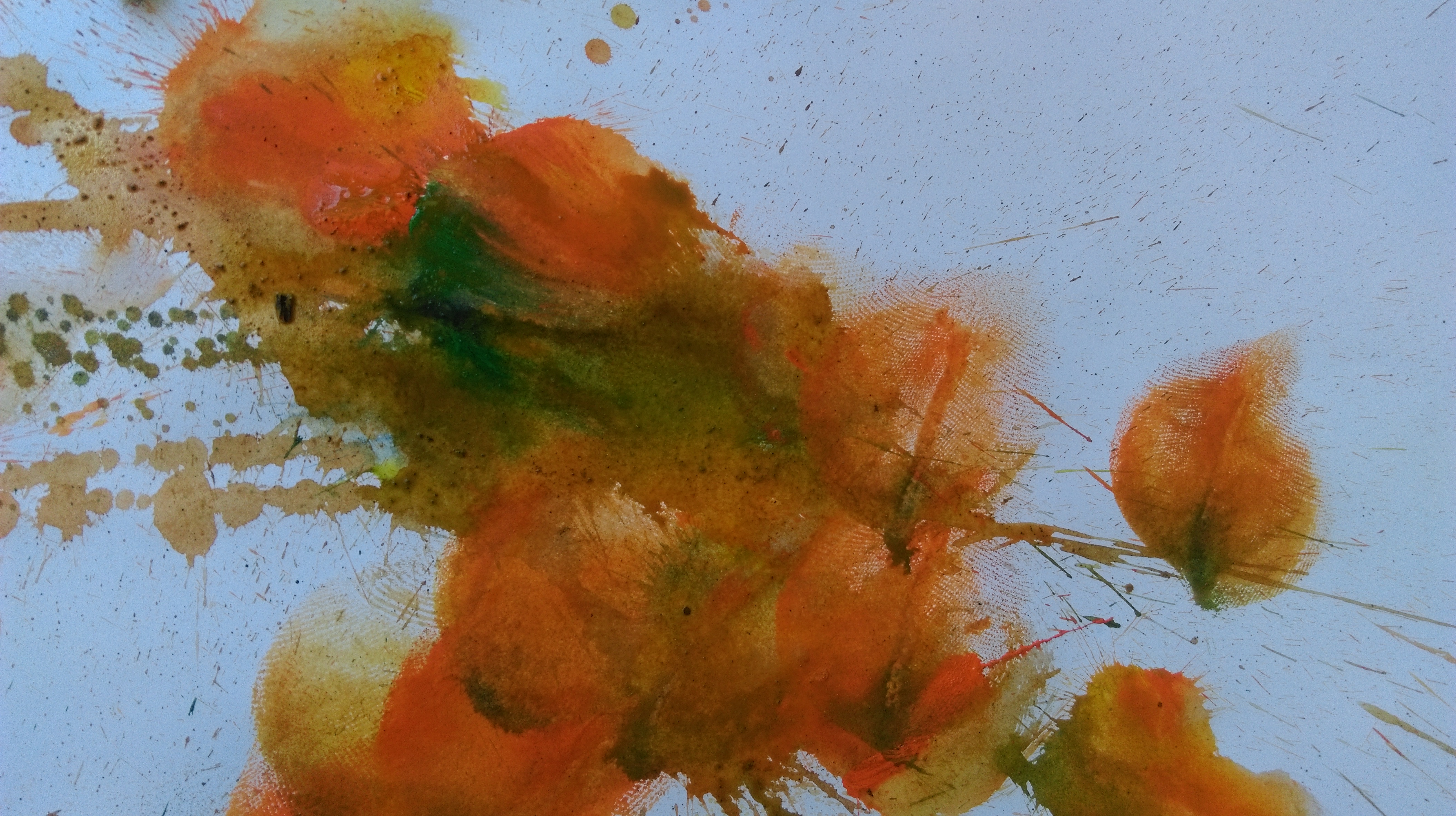 真是太好玩也太好看了! 這個絲襪球也變成我們作畫常常用的工具, 它產生出來的效果很自然也富有爆發力! Love it!