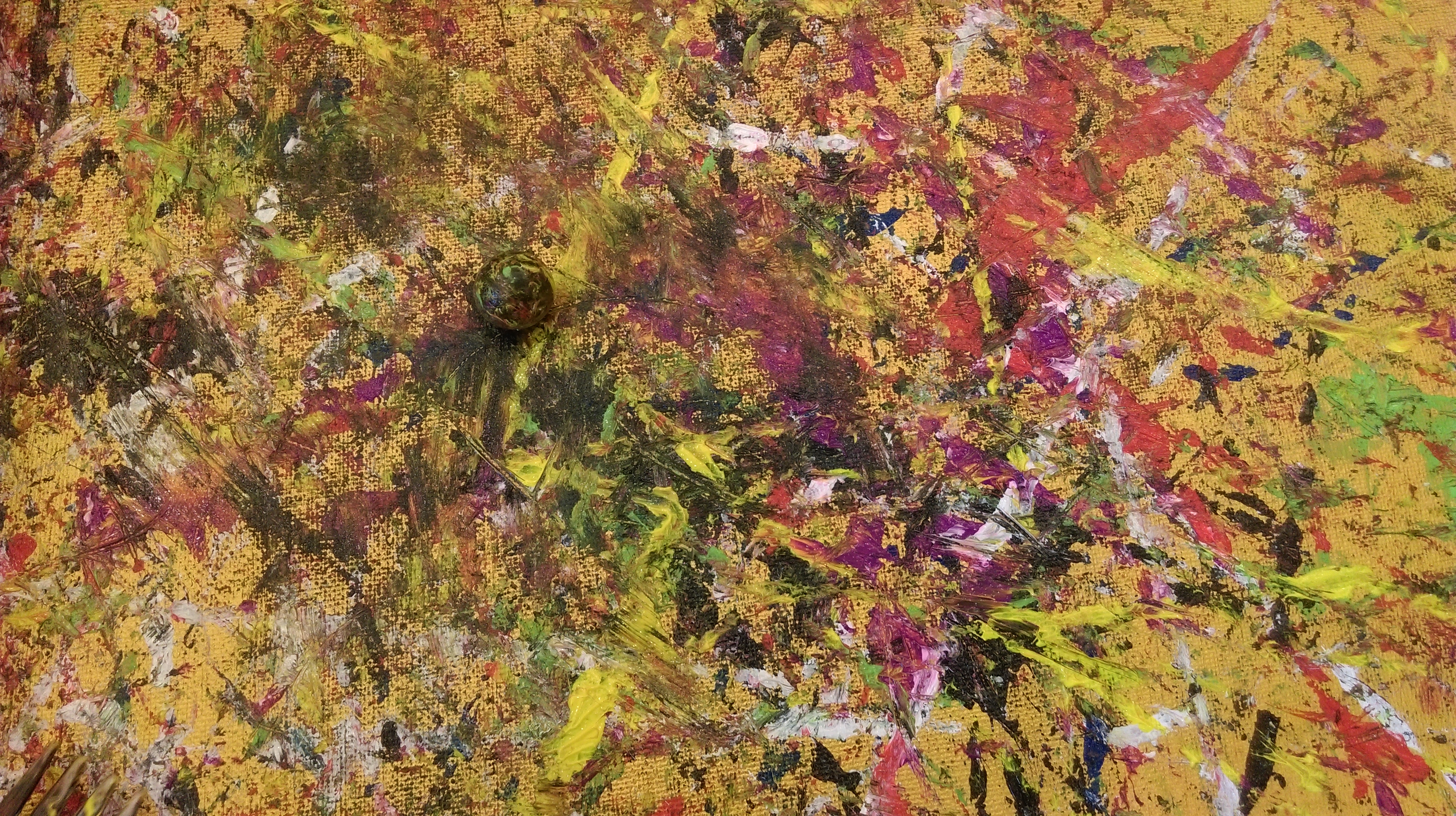 看著線條錯綜交錯複雜的交織…這讓我聯想到美國一位知名的painter, Jackson Pollock….他的畫風就是線條派的抽象. 沒想到用滾球的方式出來的畫也很有style!