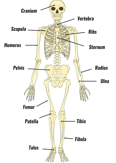 • 先找出人類這幾個骨骼: Humerus, radius, ulna, scapula. Femur, tibia, fibula, pelvis, vertebra