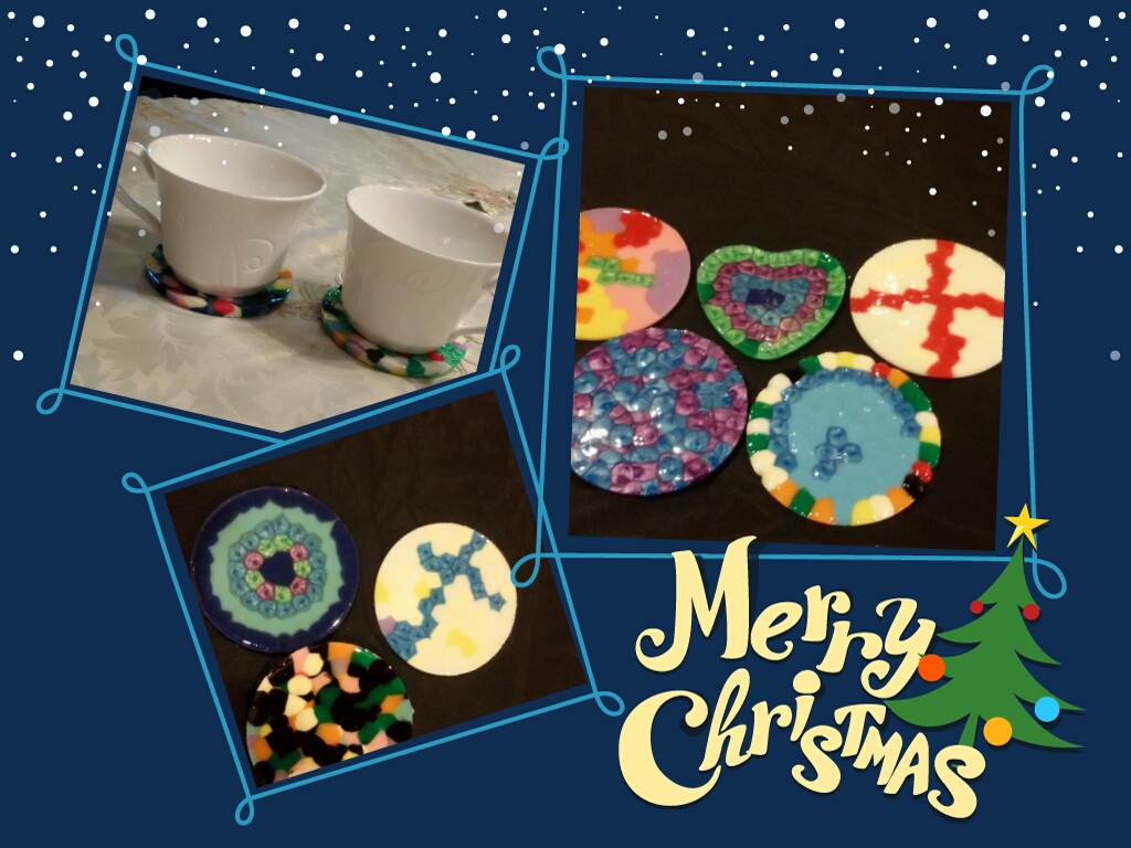 真的….就是這麼簡單! 一個下午孩子就可以做出好多個可以當作杯墊或牆上的裝飾品都可以唷! 美麗啊……………………..20141221_171253