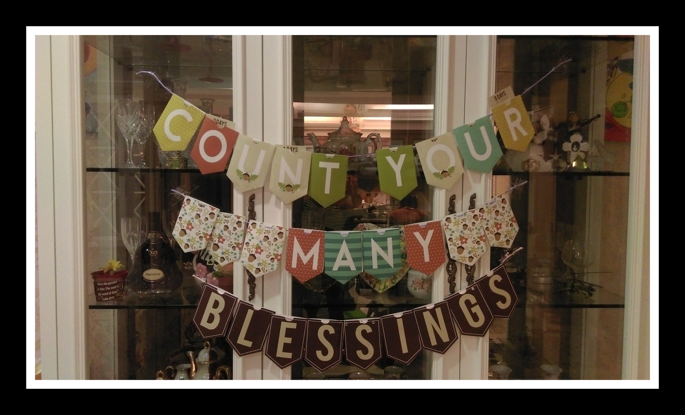 我在網路上找到這份以感恩為主題的橫幅, 每一個字都跟圖案都是一個小口袋, 裡面有著給予行動的小卡片, 讓孩子每天在倒數至月底感恩節之前都有一個給予的秘密行動要去做! IMAG3476[1]我們每天其實都有讓孩子做Secret mission, 在一起圍繞餐桌吃早餐時, 孩子會自己去抽一個秘密任務, 規定當天要完成! 並在晚上睡前大家互相猜今天對方的秘密任務是甚麼, 我有另一篇文章說明我們怎麼進行的唷.請看這篇 Secret Mission