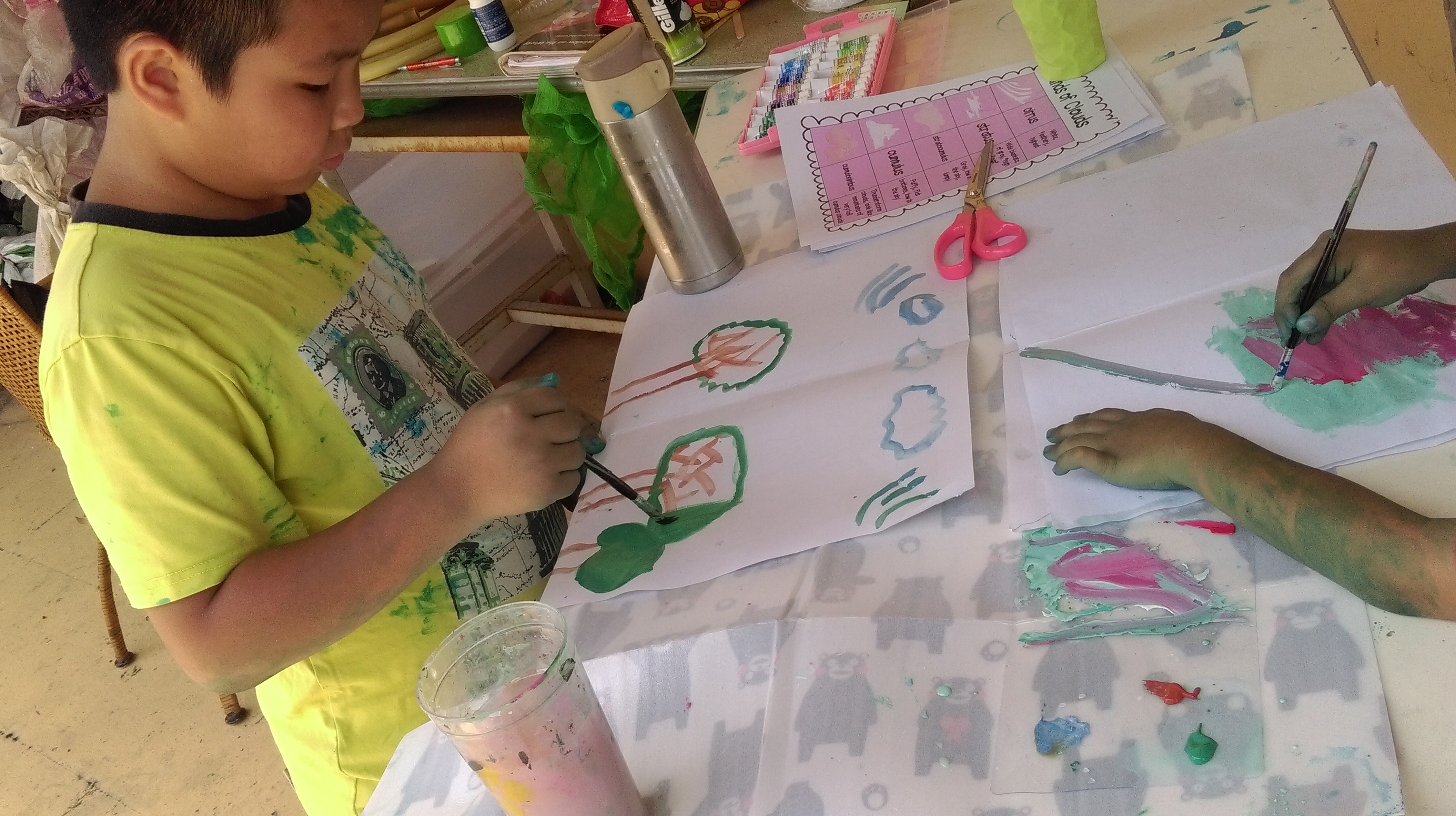 因為接近中午越來越熱…..我們就轉移回到家裡開始要做雲的立體書! 我有事先讓小朋友看影片解釋雲的種類, 才讓他們做立體書的…這樣會比較有概念。在文章最底下我有做一套雲種類的閃卡喔! 中英文版本~~~~ 歡迎大家點閱使用!