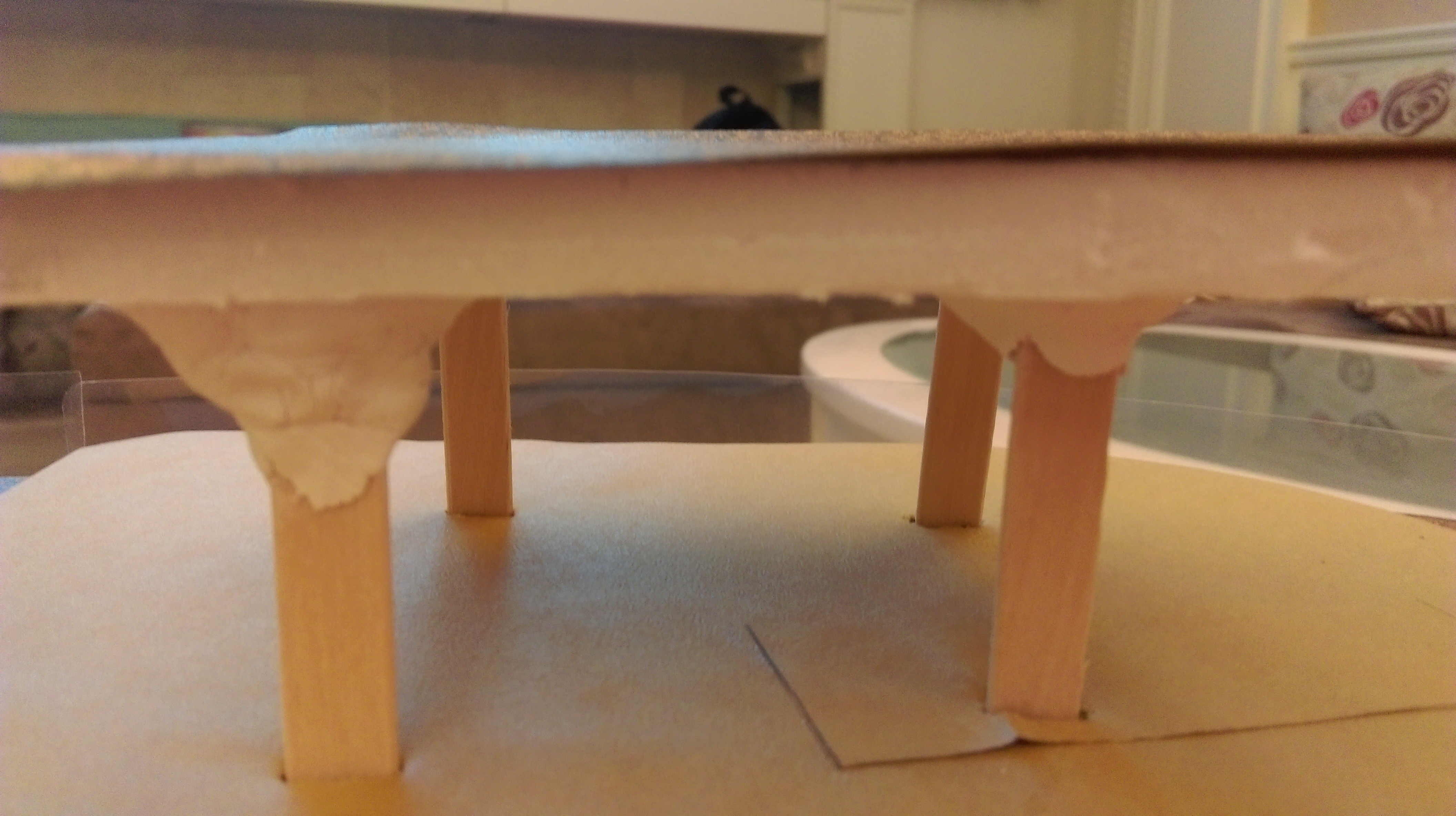 最後我們再試另一種方法。這次我們用另一張紙一前一後摺出像扇子一樣, 放在甲板下, 再放另一張紙放在摺紙下(如圖)。這種類型的橋就是所謂的吊橋。紐約著名的布魯克林橋就是這種類型的喔。
